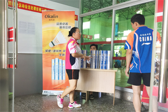 比赛当天,威健体育携龙岩阳光体育在球馆门口设立专门的澳加林羽毛球展位,工作人员为球友详细讲解Okalin(澳加林)的品牌历史和四种型号羽毛球的性能特点,帮助球友找到最适合自己使用的型号,让他们在运动中更加得心应手。