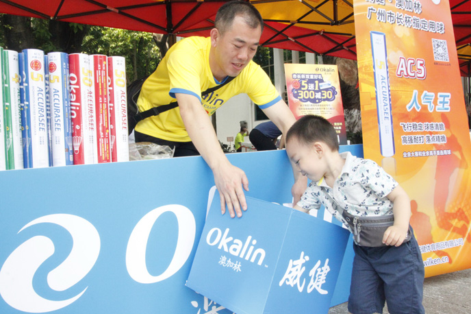 前方赛场热闹非凡,后方澳加林展位也吸引了大量人气。不少球友前来展位咨询和购买澳加林产品,幸运抽奖活动中,羽毛球、运动服、挎包、手胶、护腕等装备都在奖品之列,颇具诱惑力,连可爱的小朋友也兴高采烈的加入了抽奖大军。大家对丰富的奖品感到分外惊喜,high爆的现场传来阵阵热烈的欢呼。