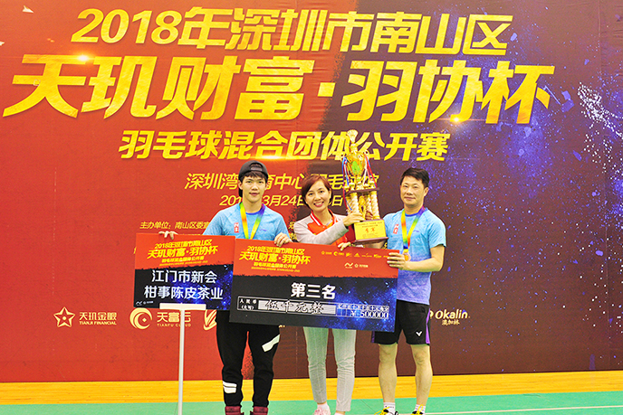 江门市新会柑事陈皮茶业队、武大校友羽毛球俱乐部一队则分获三、四名。