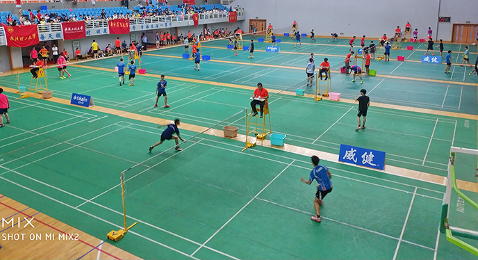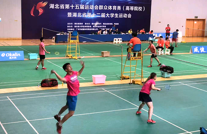 由广州市威健体育用品有限公司协办的湖北省第十五届运动会群众体育类(高等院校)暨湖北省第十二届大学生运动会,于5月18-20日在武汉职业技术学院举行。本次羽毛球竞赛是历年参赛单位和运动员人数最多的一次盛会,共有来自全省57所高校共800余名运动员参加。