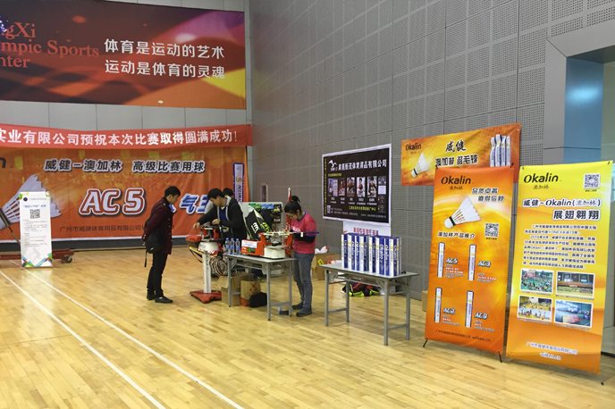 2015年12月12日至13日,2015第一届江西省羽毛球协会杯羽毛球赛在奥林匹克体育中心羽毛球馆顺利开拍。广州市威健体育用品有限公司作为一家拥有资深羽毛球研发经验的企业,非常荣幸被选为本赛事赞助商,为比赛提供赛事用球Okalin澳加林AC 5。