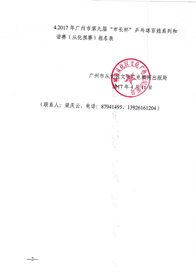 2017年广州“市长杯”混合团体赛(从化区)规程及报名表