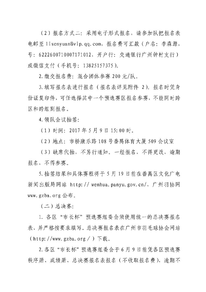2017年广州“市长杯”混合团体赛(番禺区)规程及报名表